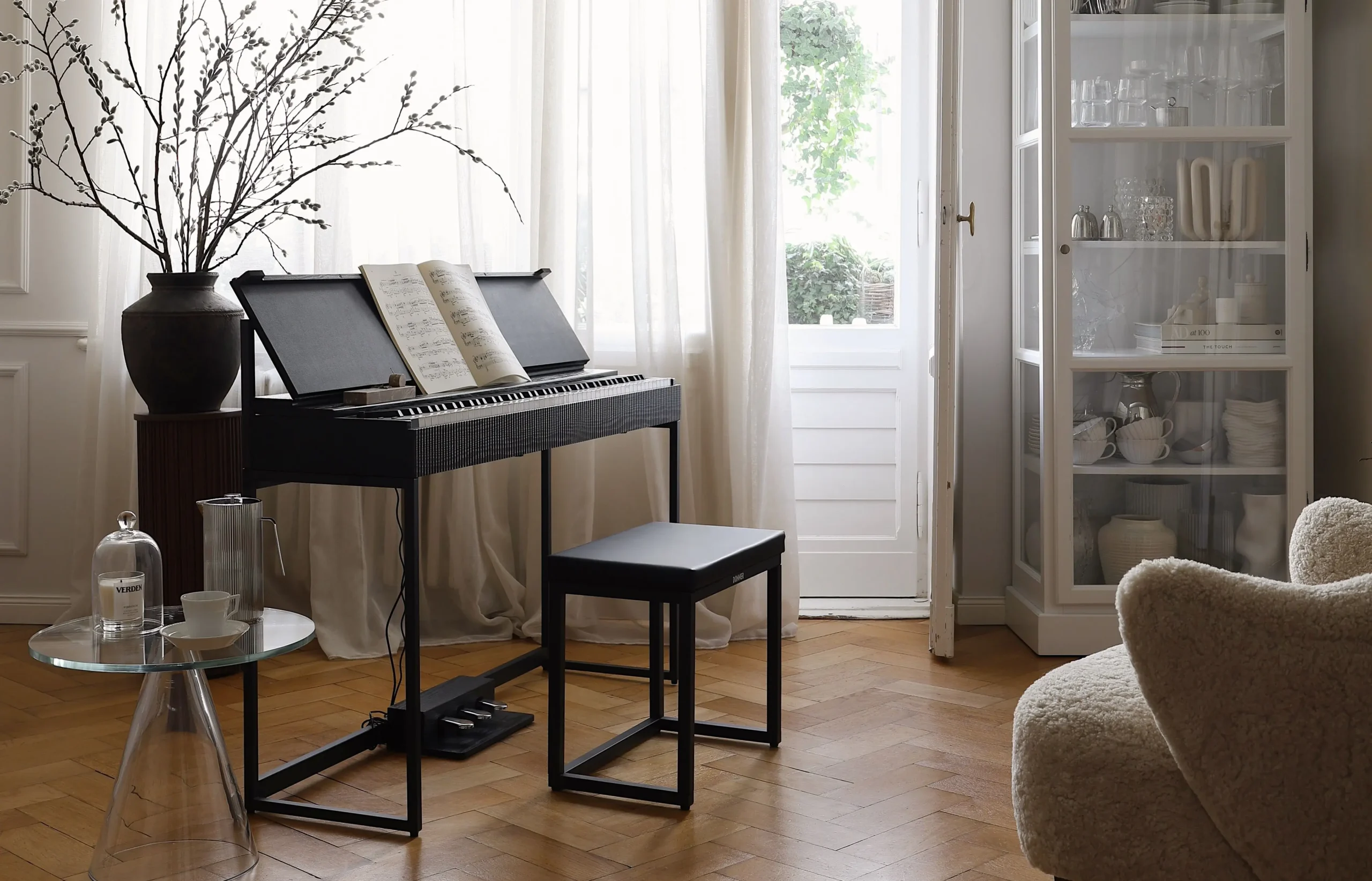 Most digital pianos followed a utilitarian aesthetic: black plastic housings, bulky stands, and an appearance better suited to rehearsal rooms than living spaces.