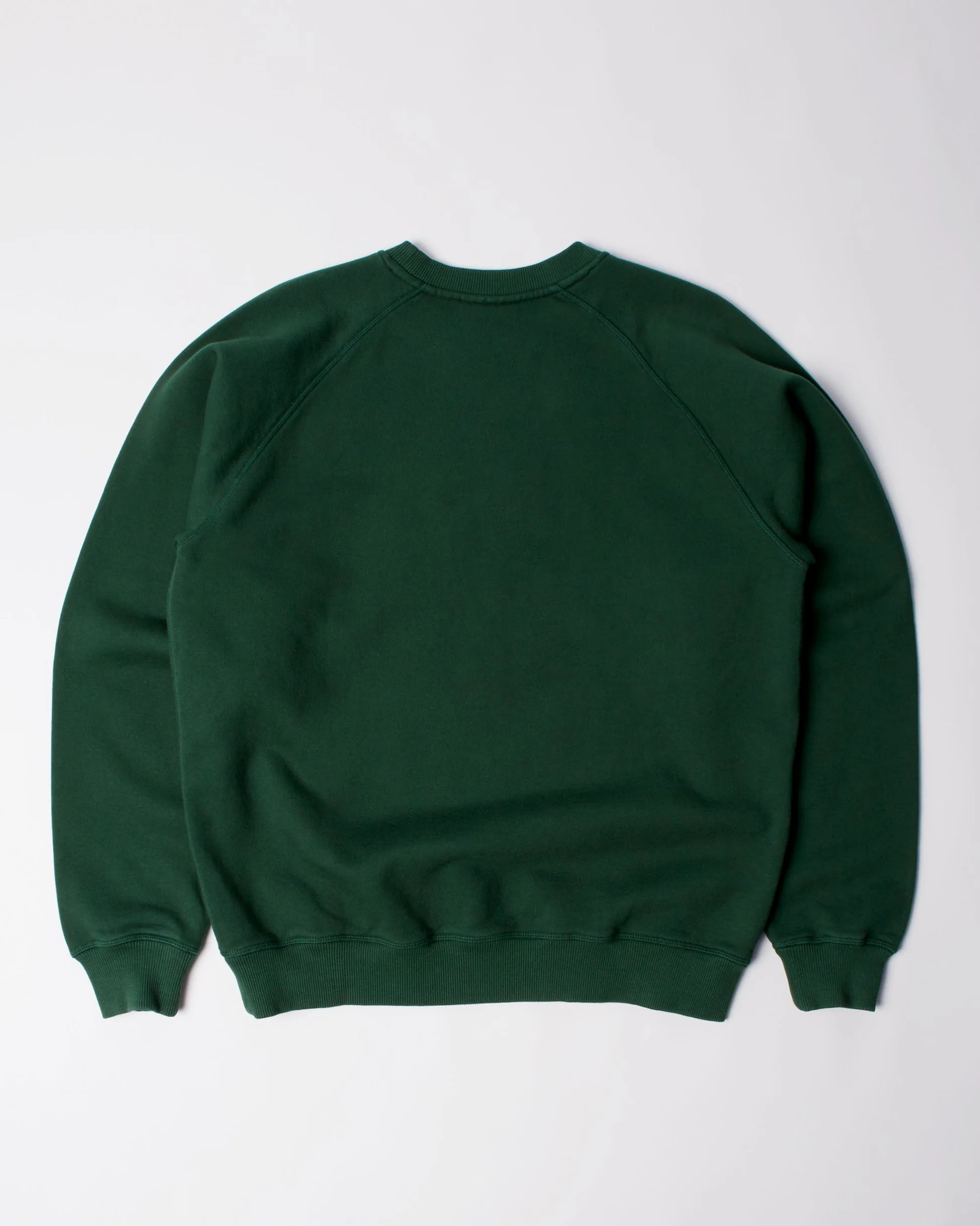 Made in Portugal, the sweatshirt uses brushed interior that gives it a soft, durable feel. It’s pre-washed for minimal shrinkage, finished with ribbed cuffs and collar, and cut in a raglan style for better movement and shape. The standout detail is the “Drunk Parent” appliqué lettering stitched across the chest — a bold but clean graphic that defines the piece without overpowering it. The green colorway feels deliberate: balanced, natural, and quietly confident, a welcome alternative to the usual black and grey staples.