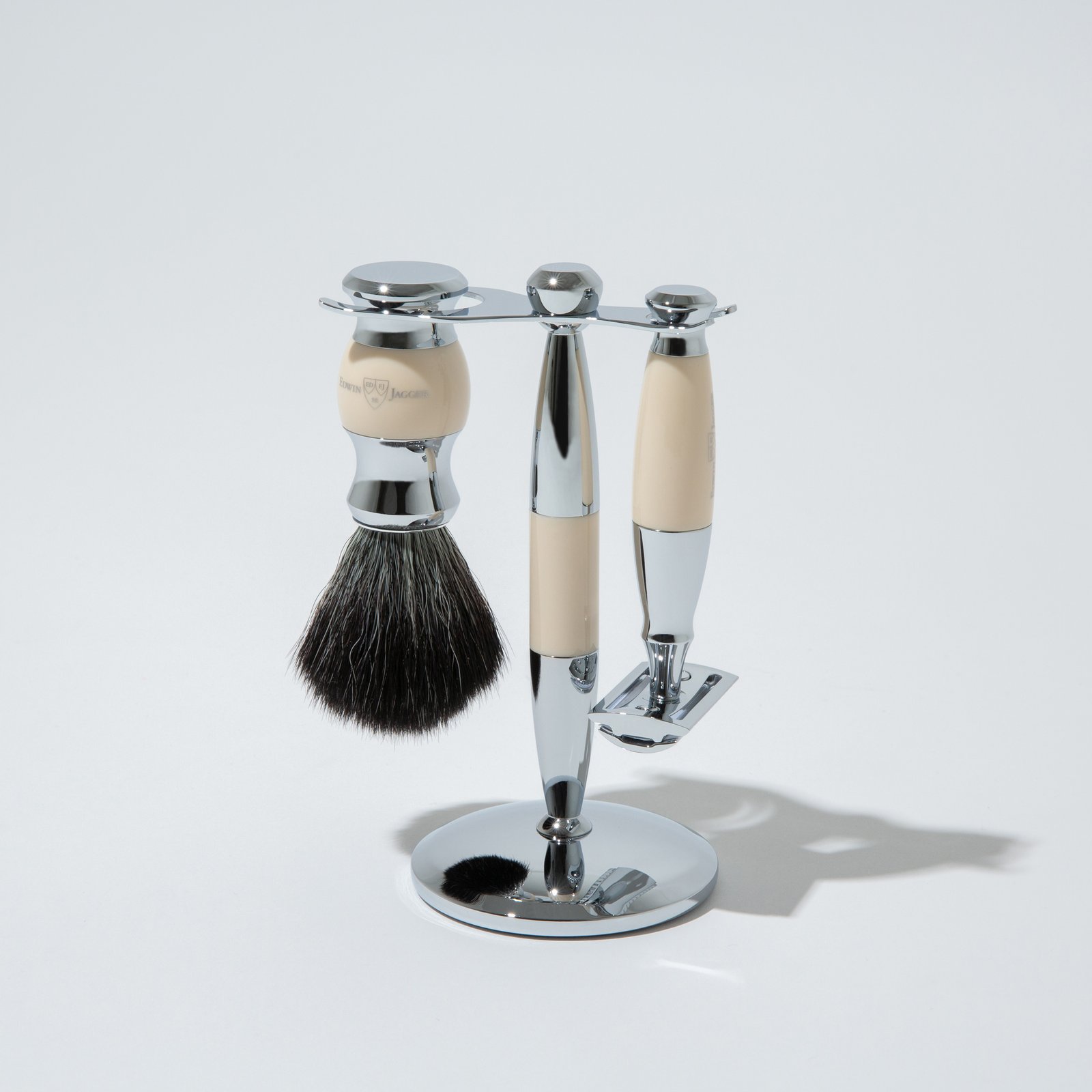 A standard Edwin Jagger Shaving Set typically includes the following components: