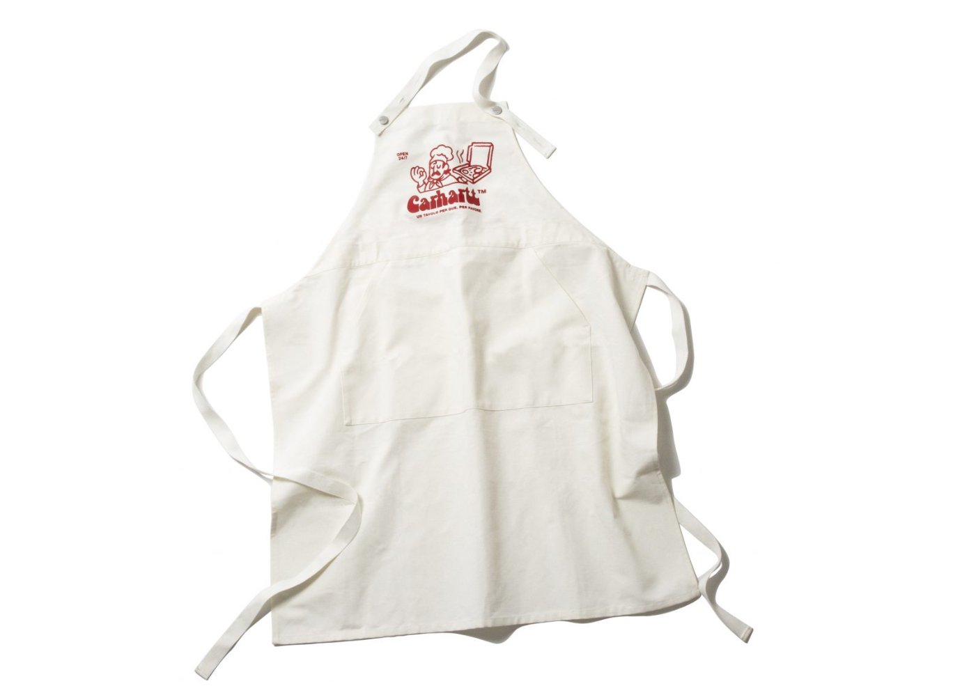 At first glance, the Carhartt WIP apron is modest. A simple shape rendered in the brand’s signature canvas, a material known for its toughness—worn by generations of laborers and embraced by a generation of cultural tastemakers. It’s a textile that has taken on paint, oil, dust, and sweat. In this case, it’s just as ready for tomato sauce or charcoal soot.