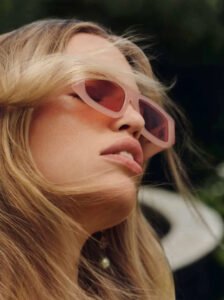 The colorways tell a deeper story. Earth tones dominate—amber, tortoise, mossy greens, and soft blushes—mirroring Reformation’s aesthetic universe of grounded elegance. They feel at home in nature, under sun-filtered leaves, or beside a woven handbag. Yet there’s a futuristic undercurrent here too, with icy transparents and smoky grays introducing a touch of digital sleekness, as if to say: yes, you can be eco-conscious and still look plugged into the now.
