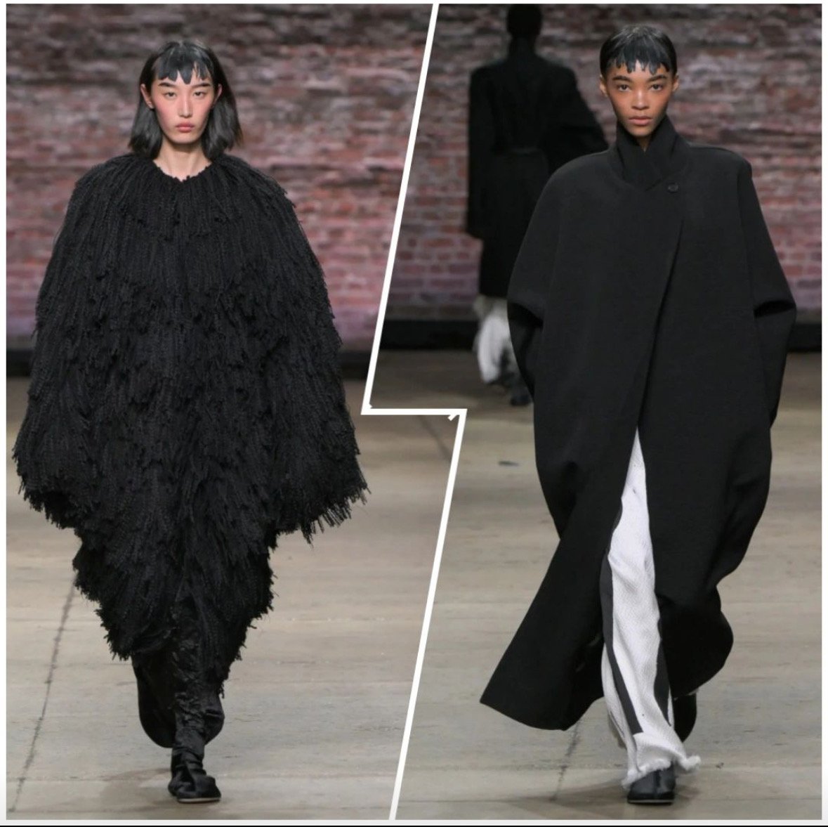 • A lightweight wool trench, which transformed into a dress when worn off the shoulders, creating versatility in styling.