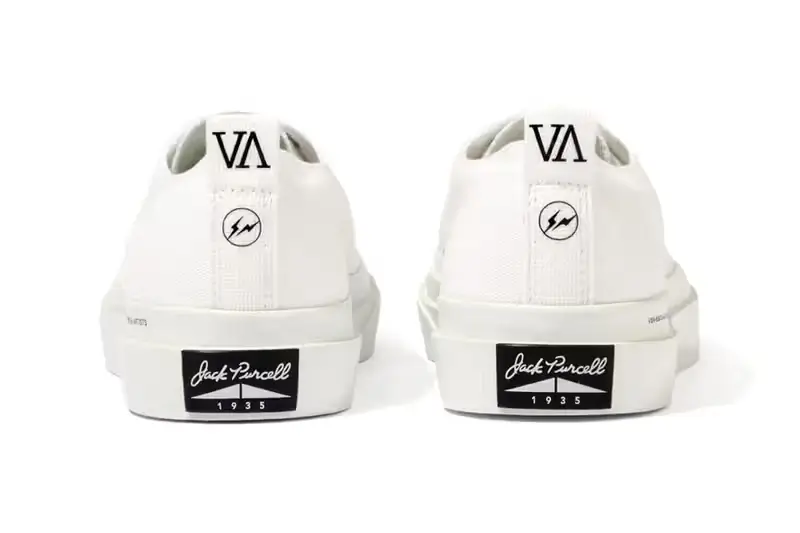 The stacked heel logos serve as a subtle reminder that behind the clean white canvas lies a collaboration between three creative forces — Fragment Design, VA, and Converse — united by a shared respect for cultural history.