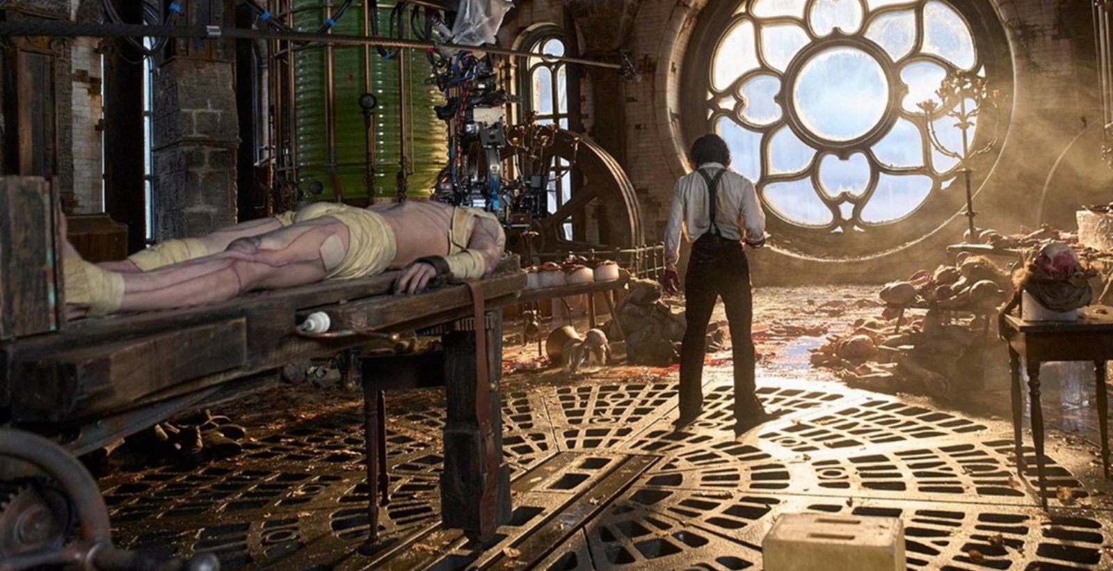 From the opening shot—a crucifix shattering in reverse motion—we know this is not merely a tale of scientific hubris but one of spiritual inversion. The set design evokes the Eastern European ruins of war-torn faith, with laboratories nestled beneath stained glass windows and corridors flooded by candlelight and steam. The Creature is first glimpsed through fog, not roaring but trembling, wrapped in a monk’s robe, suggesting penitence as much as menace.