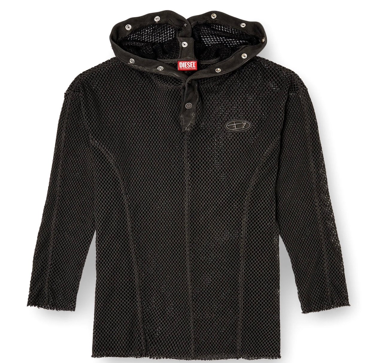 Diesel’s legacy has always rested on its willingness to provoke through fabric. From distressed denim to translucent synthetics, the Italian house reimagined everyday materials into a language of subcultural rebellion. The fishnet hoodie reinforces Seoul’s Thug Club reflect within this lineage. The mesh construction speaks of exposure and boldness, aligning seamlessly with Diesel’s past campaigns that dared youth to wear their identity on the surface. Its heritage translated into texture—clothing that remains as much a statement as a garment.