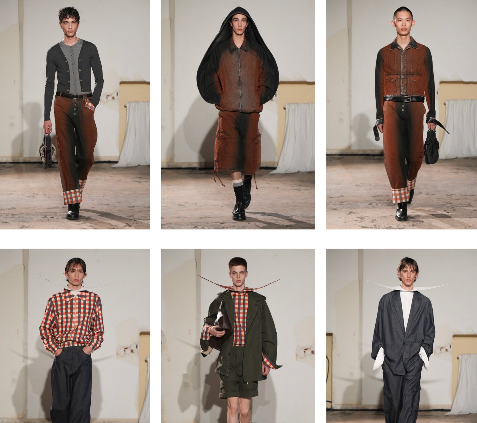 Queer silhouettes: Garments embraced hips, opened at the clavicle, or flared like ecclesiastical robes—defying the gendered geometry of traditional fashion.
