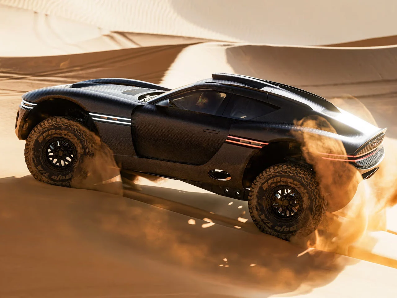 The proportions are pure supercar, but distorted for the desert: higher ride height, thicker body sections, exposed hardware, and purposeful brutality layered on top of Genesis’ signature elegance.