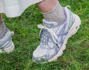 The collaboration features two unique colorways of the GEL-Venture 6, each adorned with gingham patterns that evoke a nostalgic, cottagecore aesthetic. The first pair showcases a white base complemented by violet gingham accents and soft cream details, while the second pair adopts earthy brown hues with matching plaid patterns. These designs incorporate breathable mesh and synthetic materials, ensuring comfort and durability. Gingham-wrapped laces and midsoles further enhance the handcrafted feel of the sneakers.