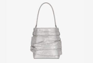 There are bags that whisper, and there are bags that shimmer. The Givenchy Shark Lock Bucket Bag in satin with strass does both, embodying the house’s quiet legacy of Parisian precision while glinting with the theatricality of a stage light hitting crystal. In a world oversaturated by logos and overexposed silhouettes, this piece emerges as a rarified object—something closer to sculpture than fashion, but undeniably rooted in the functional world of accessories.