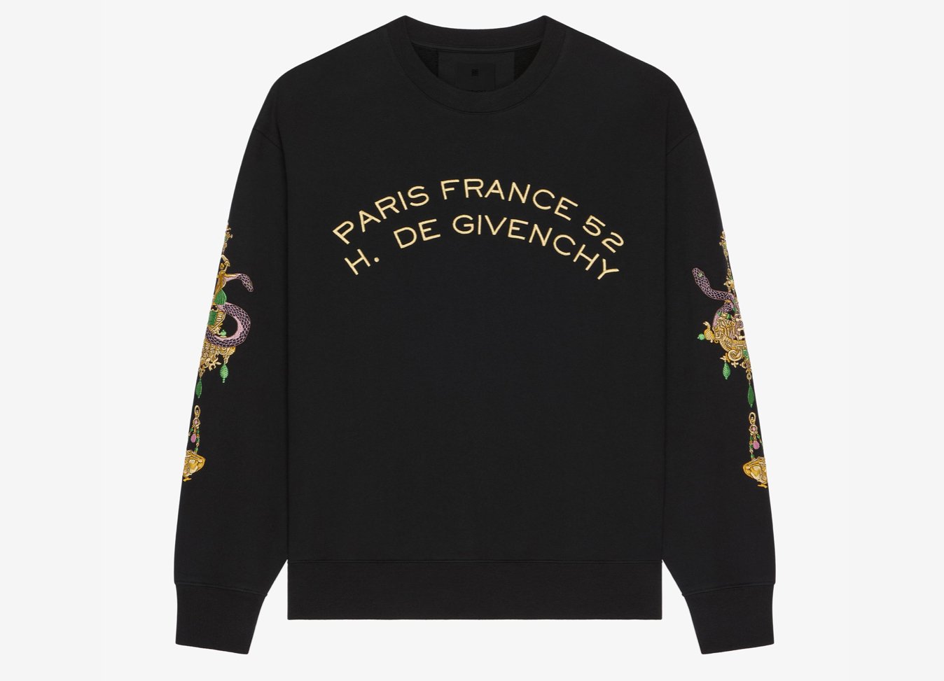 At a glance, it’s a sweatshirt. Soft fleece. Classic silhouette. But look closer: coiled across the front and shoulders is a meticulously rendered snake, slinking its way around a dramatically ornate chandelier, its crystal-like details glinting with gothic intensity. This isn’t embellishment for embellishment’s sake. This is a narrative—one that threads through the house of Givenchy’s evolving codes under creative director Matthew M. Williams.