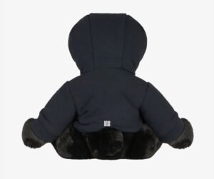 Plush toys have long danced along the borders of fashion and sentimentality, but the GIVENCHY teddy bear in faux fur marks a distinct evolution in that relationship. Crafted with the precision typical of the maison’s ateliers, the bear is swaddled in thick faux fur that simulates the rich tactility of mink, dyed in a deep noir that whispers to the gothic aesthetics frequently threaded through Williams’ work. It’s a couture statement masquerading as a plaything: anthropomorphic, adorable, and oddly ceremonial.