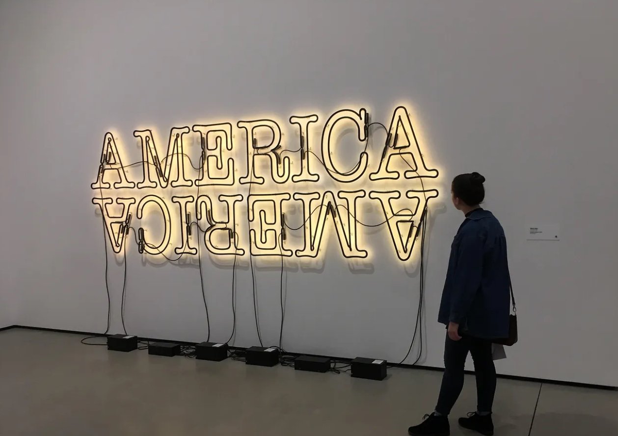Glenn Ligon’s “Double America” is an intriguing work of art combining neon and paint to engage with themes of identity, language, and socio-political context. Displayed at the National Gallery of Art in Washington, D.C., since 2012, this piece stands as a provocative commentary on the American identity’s complex and sometimes contradictory nature. Using a minimalist yet powerful approach, Ligon invites viewers to explore the multiplicity of meanings behind the concept of “America.”