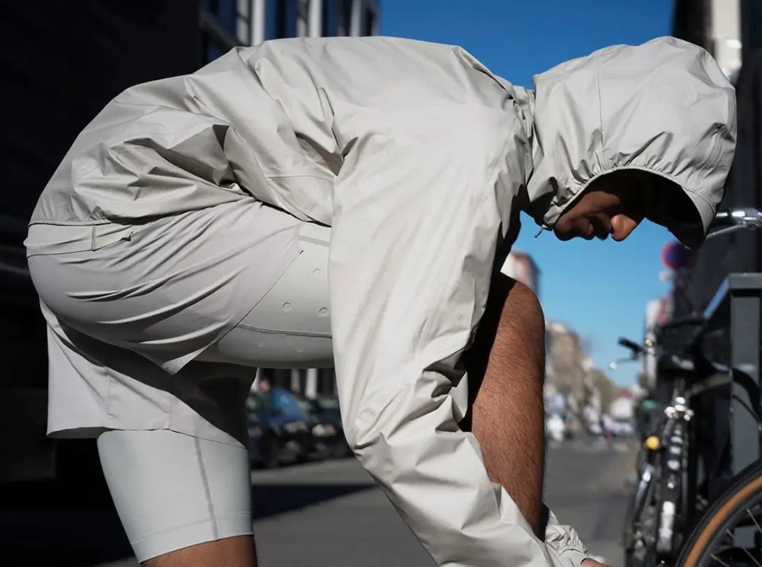 Constructed from 100% recycled rip-stop nylon, the jacket addresses the unpredictability of the urban environment: sudden rainfall, shifting winds, abrasive surfaces. Yet its most defining qualities are not immediately in view.