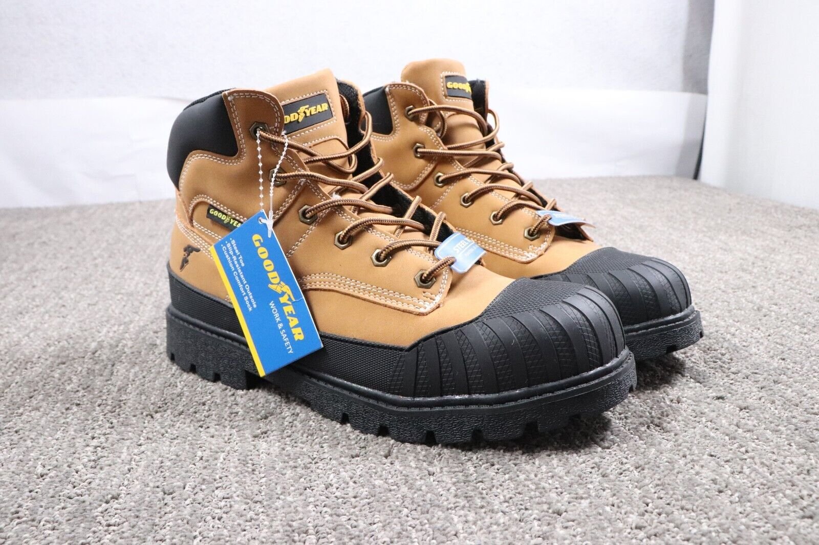 Proper care and maintenance will help prolong the life and appearance of your Goodyear Steel Toe Work Boots. This includes cleaning the leather with a damp cloth and mild detergent, allowing them to air dry, and applying leather conditioner to maintain their suppleness. Additionally, regularly checking the steel toe cap and the slip-resistant outsole for signs of wear can help ensure their continued effectiveness.