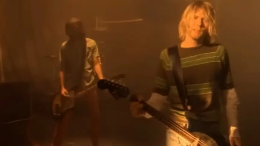 Cobain stands at the center of the performance, strumming his guitar while the crowd gradually erupts into a frenzy. The imagery—dark lighting, smoky air, and explosive movement—captured the mood of the early 1990s with startling clarity.