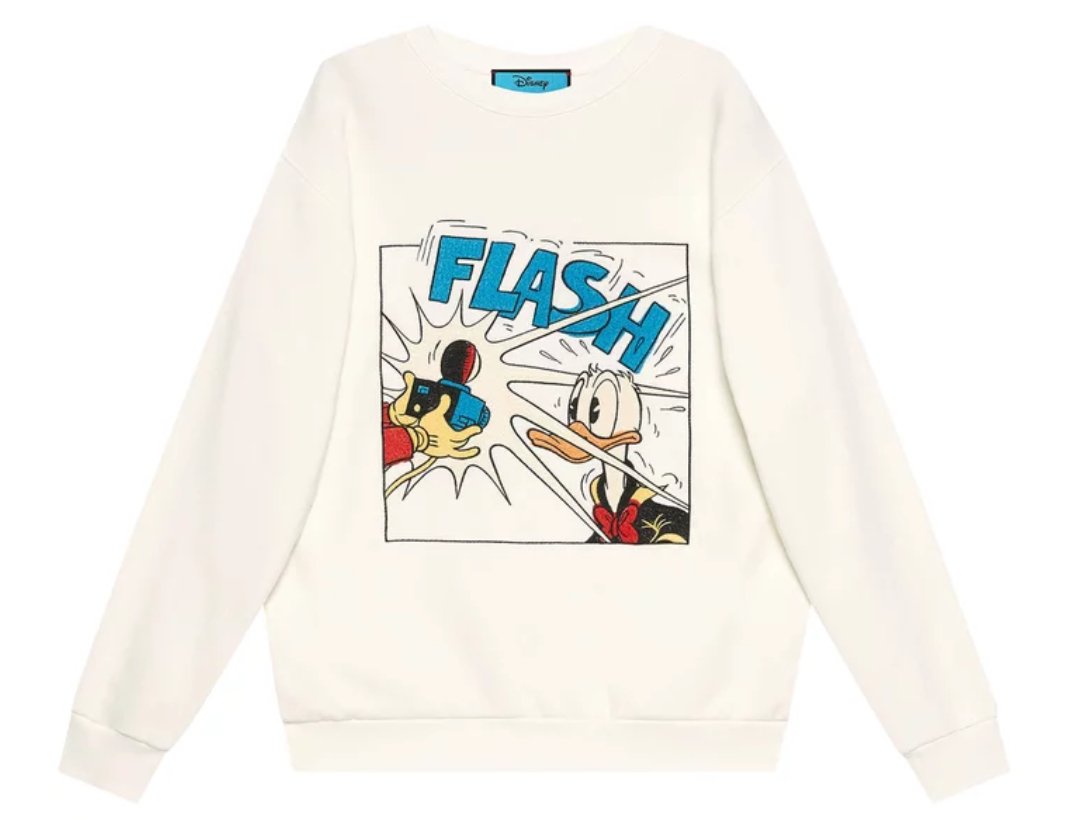 The Gucci x Disney Donald Duck Cotton Sweatshirt in White is more than just a piece of clothing—it’s a celebration of the intersection between fashion, art, and nostalgia. Its playful yet sophisticated design makes it a versatile addition to any wardrobe, while its cultural significance ensures that it will remain a cherished item for years to come. By merging the worlds of Gucci and Disney, this connection continues to redefine what luxury fashion can be, proving that high-end style and childhood joy are not mutually exclusive, but can instead complement and elevate each other in delightful and unexpected ways.