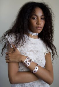 Elvis—who knits most of the pieces—learned the craft as an act of self-soothing. For them, knitting isn’t just a method; it’s a survival tool. A meditation. A way to move through grief, anxiety, and joy with their hands.
