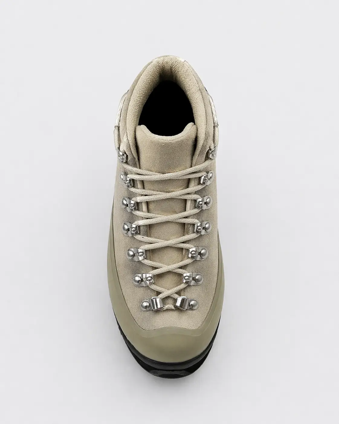In a landscape where performance footwear is often reduced to spec sheets and trend cycles, the relaunch of HELIOT EMIL’s Hiking Boots resists that flattening. This is not a seasonal refresh, nor a cosmetic iteration. It is a reassertion of process—an insistence that construction, not narrative, remains the core language of the product. Built in collaboration with Diemme, the boots arrive as a study in endurance: material, structural, and cultural.