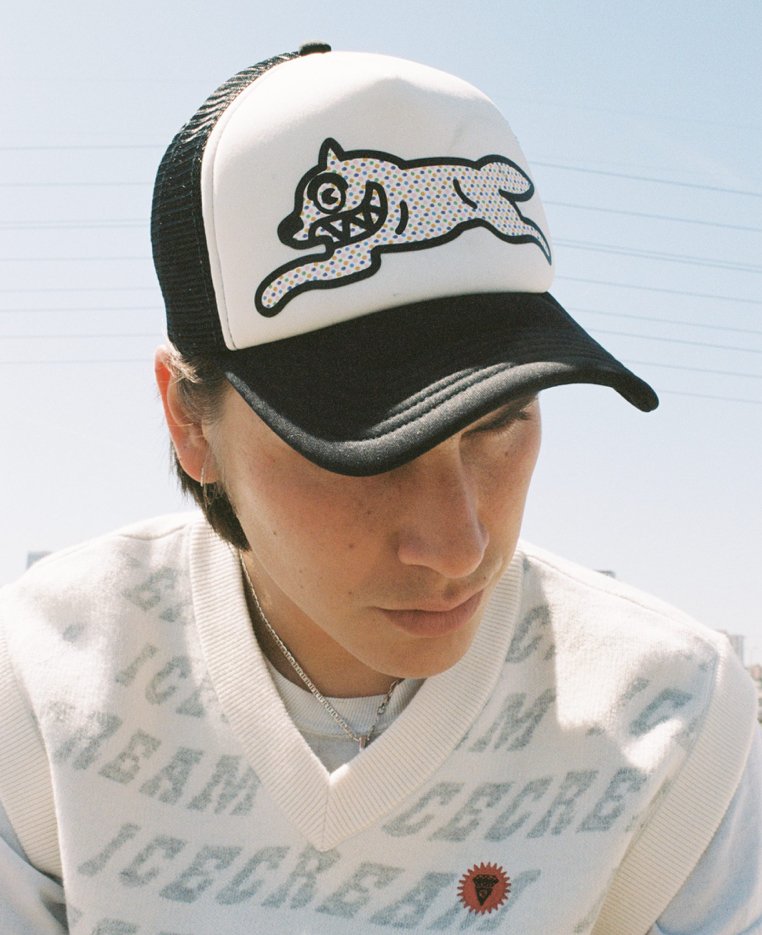 Accessories are minimal but effective: embroidered trucker hats with foam panels, gradient-rim sunglasses with polarized lenses, and a modular belt pouch that evokes ICECREAM’s 2000s heyday while offering a current-day utility. The footwear, surprisingly understated, includes a low-top skate silhouette done in brushed suede and gum-rubber outsoles, branded subtly on the heel tab.