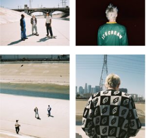 The Viaduct, both new and historic, is an apt stage. Its concrete expanse has served generations of LA skaters and filmmakers alike—blending movement, defiance, and a strange kind of postmodern romance. For ICECREAM, this backdrop elevates the garments into something closer to armor: cotton-weighted, color-blocked, and emblematic of identity in motion. The film captures HAMZA’s spontaneous rhythm across railings, curbs, and open air, revealing how ICECREAM’s designs hold their own under pressure. Every silhouette is both utility and symbol. Every stitch, a flag.