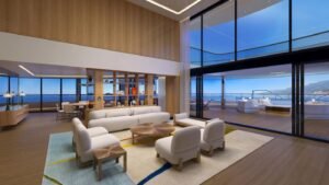 At the heart of this luxurious marvel is the Funnel Suite, an over-the-top accommodation spanning nearly 10,000 square feet, making it one of the most extravagant suites ever constructed on a yacht. Designed to push the boundaries of luxury, the Funnel Suite is expected to rival the world’s most prestigious penthouses, offering panoramic ocean views, a private spa, a rooftop terrace, and an exclusive infinity pool.