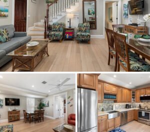 Both residences are fully updated, featuring open-concept floorplans that respect the need for flow and airiness in a tropical climate. High ceilings and plentiful windows maximize natural light, while subtle coastal finishes—light wood tones, stone countertops, and breezy textiles—enhance the island ambiance. The updated kitchens in both homes reflect a balance of style and utility, with stainless steel appliances, generous storage, and counter space for preparing everything from sunset cocktails to family feasts.