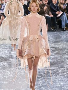 •Silk tulle, lace, and sheer fabrics drape weightlessly, adding to the collection’s dreamlike quality.