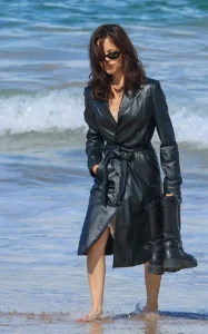 Ortega’s response was not to dilute but to intensify. With the help of her stylist Enrique Melendez, she leaned into the trench as armor — a piece that translates across climates, continents, and contexts. Where most celebrities might opt for breezy linen or silk while in Australia, Ortega doubled down on gothic insistence, reframing the beach not as leisure but as a theatrical stage.