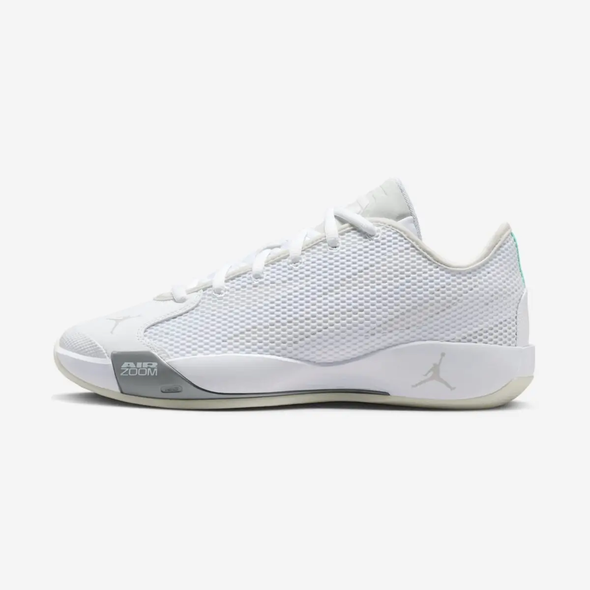 Branding on the Jordan Luka .77 “Pure Money” is intentionally understated. The Jumpman logo appears cleanly integrated, while Luka’s personal insignia is placed with restraint rather than dominance. In white-on-white execution, these details reward close inspection instead of demanding attention.