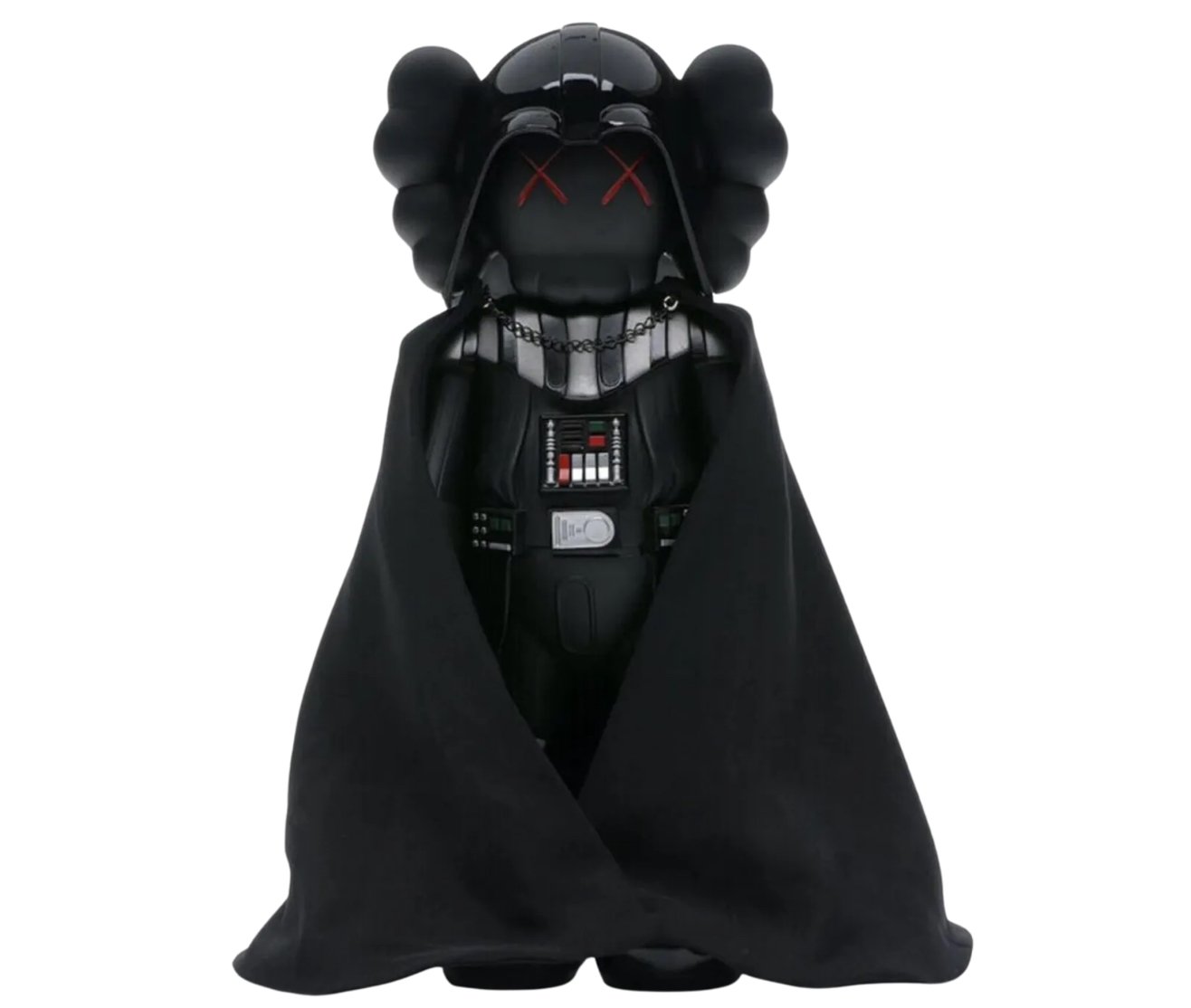 KAWS didn’t parody Vader—he absorbed him. The piece reflects the broader trend of pop culture collapsing in on itself, where every legacy brand is ripe for remix. But where corporate mashups chase attention, KAWS’s version does something more disruptive. He alters the balance of power. Vader—once a symbol of fear, dominance, and cinematic grandeur—is now toyified, de-fanged, emotionally blank. He’s not heroic or villainous. He’s blank, stylized, manufactured.
