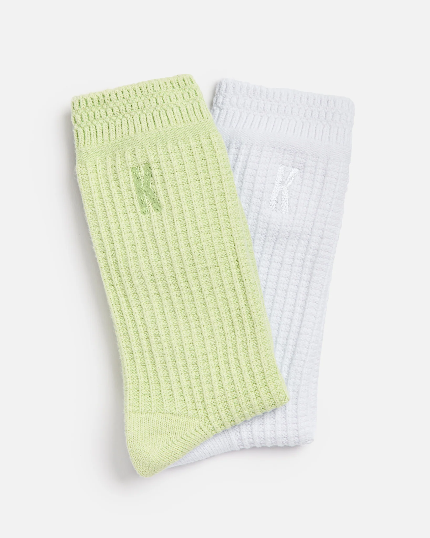 Sold as a multi-color two-pack, the KROST Knit Socks are built for everyday wear. The breathable cotton composition supports long hours on foot, while the textured knit maintains shape through repeated use. The crew height makes them adaptable across sneakers, loafers, and even boots—bridging streetwear and refined casual aesthetics.