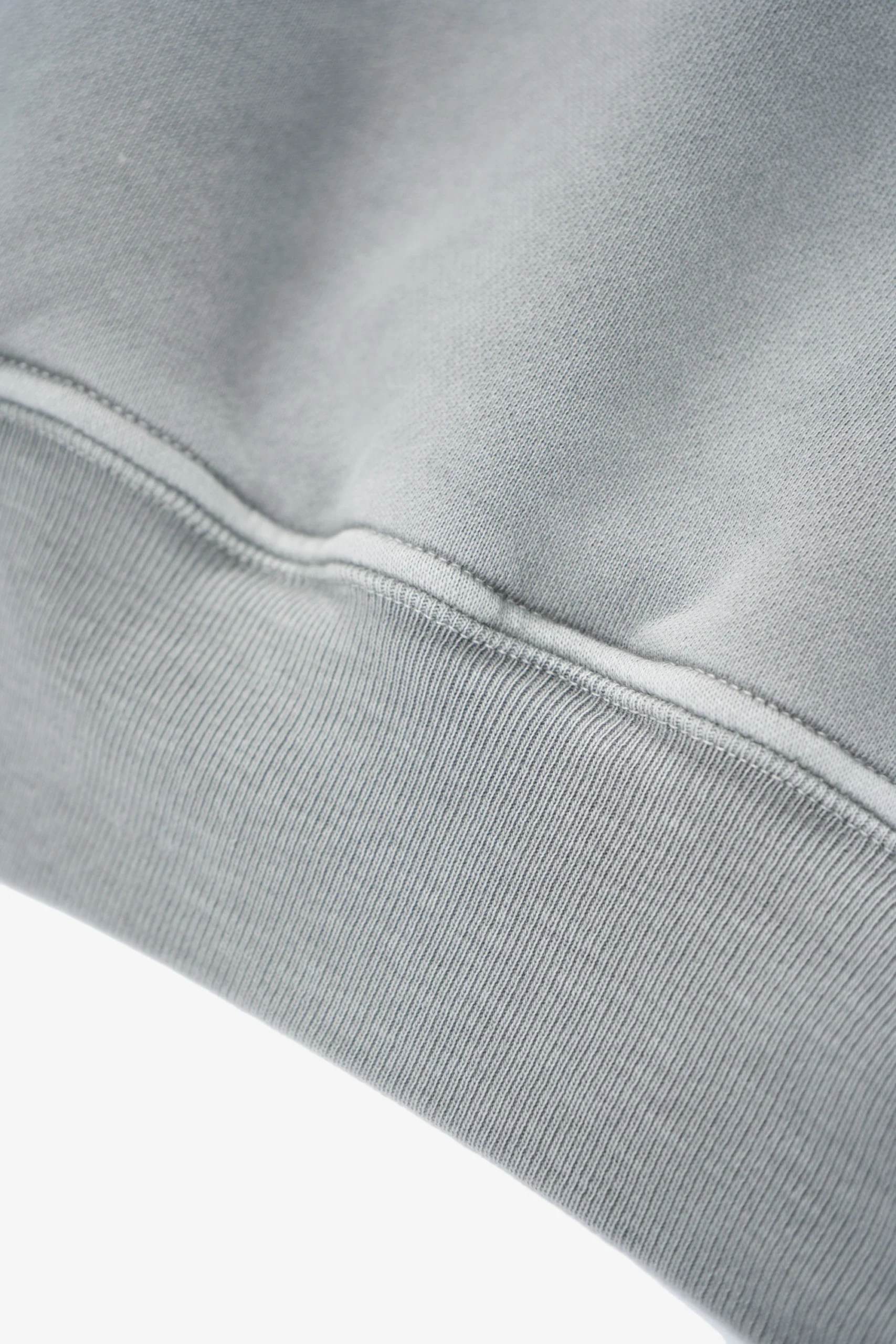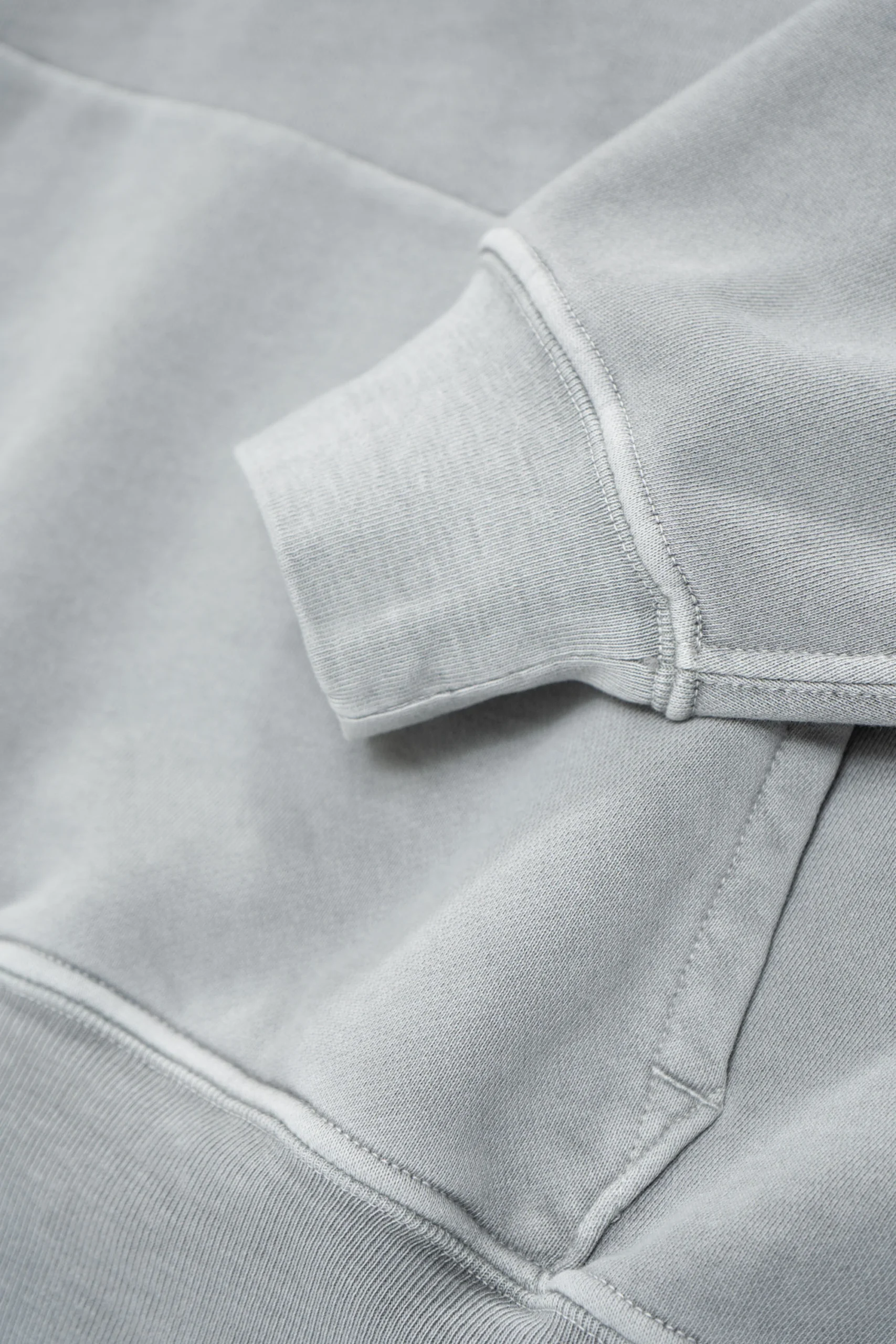 Pigment dye sits on the surface rather than saturating the fiber, so the hoodie doesn’t arrive fully resolved. It evolves. High-contact areas begin to soften and fade, seams deepen in contrast, and the garment develops its own topography over time. It’s less about patina as a selling point and more about allowing wear to register honestly.