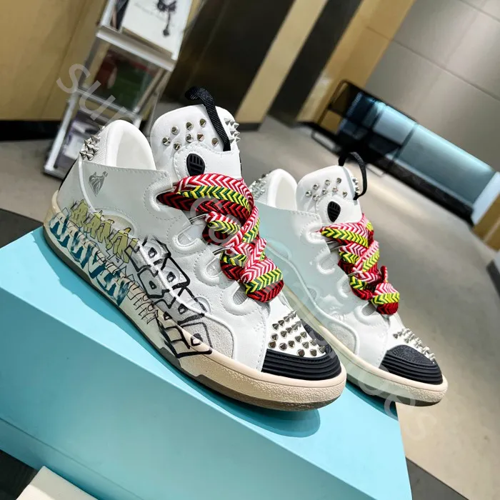The Lanvin Curb Sneaker in the Graffiti edition is an audacious reimagining of the classic skate shoe silhouette, bringing a blend of high fashion and street culture to the forefront. Lanvin, known for its luxury heritage, enters the realm of urban fashion with a sneaker that screams individuality, style, and rebellion. Here’s a critical look at what makes the Lanvin Curb Graffiti such a standout: