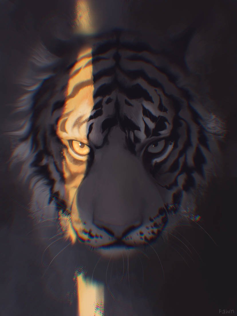 “Light” by ancientfawn is more than a digital portrait. It is a meditation—on perception, duality, and the nature of inner vision. The split down the tiger’s face isn’t just clever composition—it’s a philosophical gesture. A reminder that we are all made of parts that see and parts that hide.