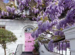 - Bedford Gardens, Notting Hill: This street is famed for its pastel-colored houses adorned with wisteria, creating a harmonious blend of architecture and nature.