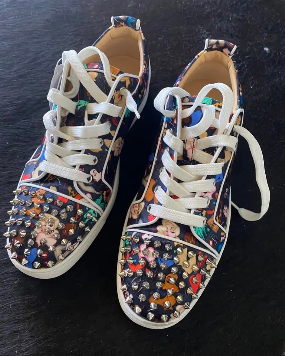 In this flow, we explore the history, design ethos, and cultural positioning of the Louis Junior Spike series, culminating in this particular cloth-printed version. A synthesis of contemporary fashion irreverence and Louboutin’s established legacy, these trainers reflect not only trends in footwear culture but also the enduring power of flamboyant detail in high-end design.