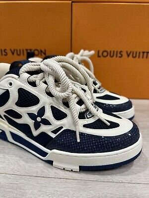 At first glance, the Louis Vuitton Skate Sneaker Marine is a striking balance between classic skate shoe design and the luxury elements associated with the Louis Vuitton brand. The deep navy blue color, or “marine,” gives the sneaker a sophisticated edge, allowing it to stand out without being overly flashy. The subtlety of the color also makes it highly versatile, allowing the wearer to incorporate it into a variety of outfits, from casual streetwear to high-end fashion ensembles.