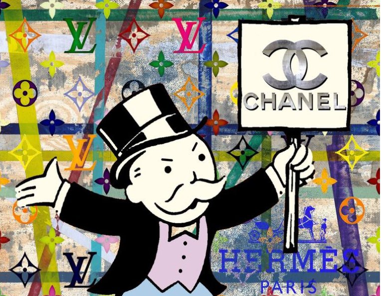 The presence of protest in the piece brings an additional layer of complexity. In today’s world, protest movements often stand in opposition to the systems that Monopoly and Chanel represent—capitalism, economic inequality, and the commodification of identity. The combination of these elements in the artwork forces the viewer to confront the uneasy relationship between consumerism and rebellion, luxury and dissent. Is the artwork critiquing the commodification of protest movements by luxury brands, or is it suggesting that even rebellion has become part of the capitalist system it seeks to dismantle?