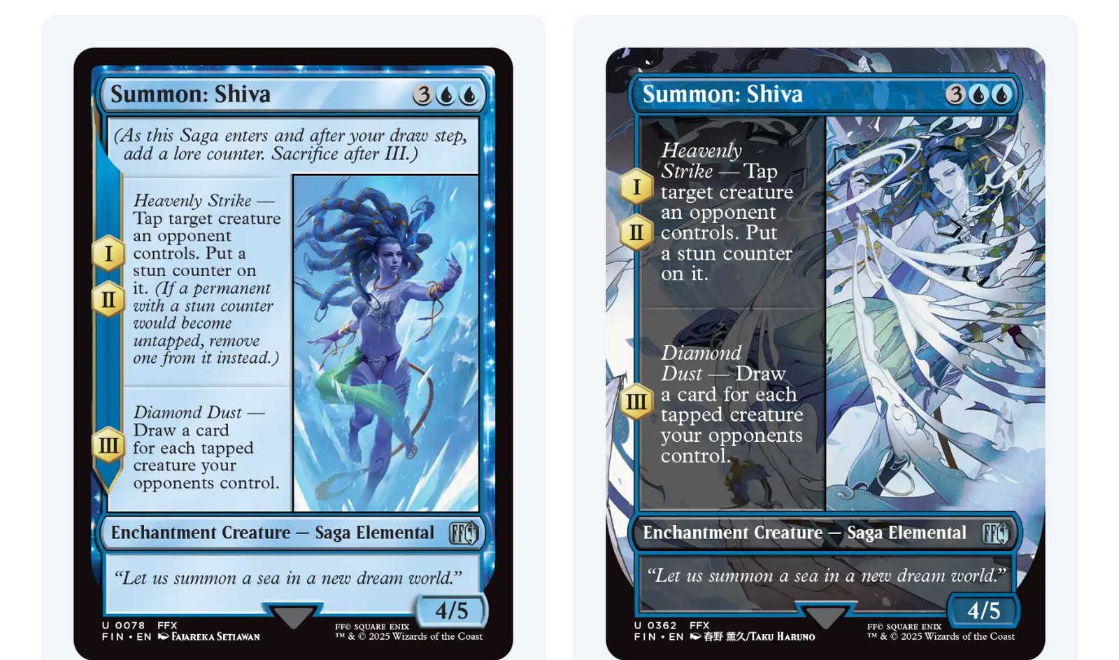 An early preview showcases Summon: Shiva, which starts as a Saga detailing the invocation of the icy summon, with effects that freeze enemy creatures and slow down tempo. Once transformed, Shiva becomes a potent flying creature with a devastating enter-the-battlefield ability, mirroring her Blizzaga-style attacks from the games.
