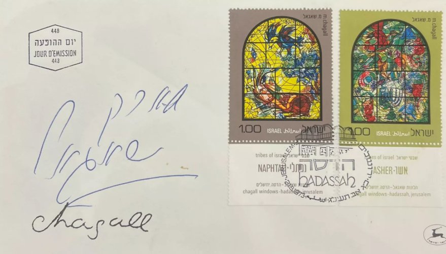 Chagall’s engagement with these FDCs extended beyond the initial artwork. He personally signed several of these covers, adding a layer of authenticity and personal connection to the pieces. Such signed FDCs are highly valued in both the art and philatelic communities. For example, a signed FDC featuring stamps of the Jerusalem Windows was sold by HistoryForSale, highlighting its collectible significance.