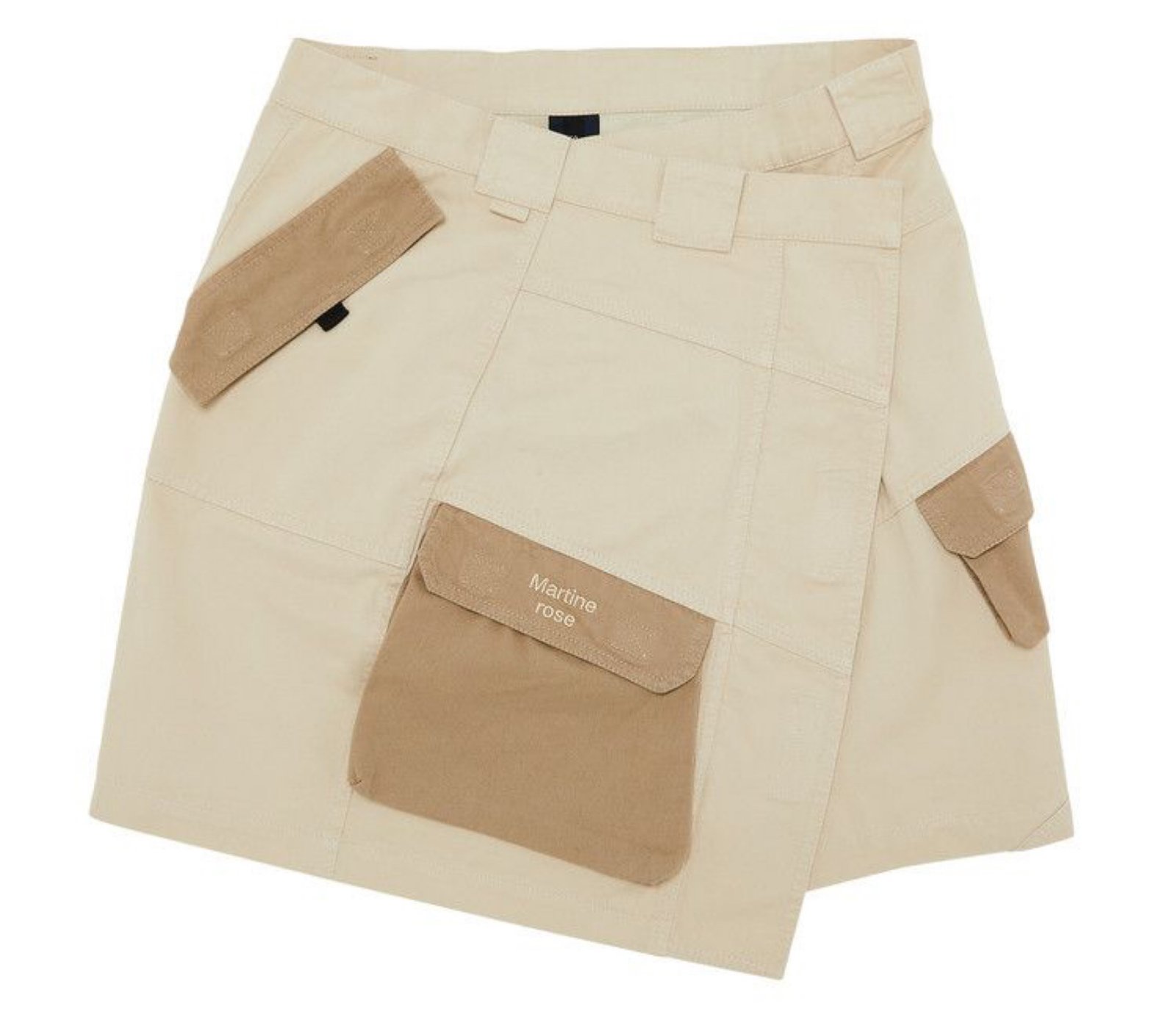 In an era where gender boundaries blur and utility merges with expression, few designers orchestrate disruption with the poise and control of Martine Rose. The Wrap Cargo Skirt in ‘Beige’ isn’t just another piece in a seasonal lineup—it’s a statement, a provocation, and a question mark wrapped in khaki tones.