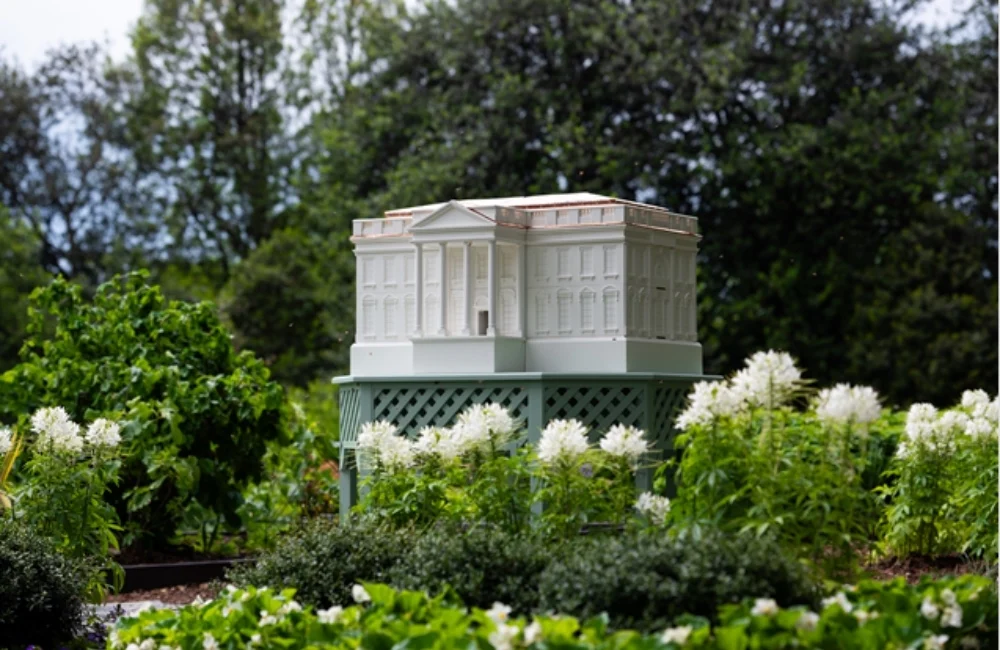 The hive itself stands out. Designed by White House Executive Residence staff and meticulously handcrafted by a Virginia artisan, it replicates the iconic neoclassical facade of the presidential mansion in miniature. Complete with tiny columns, windows, and roof details, it blends seamlessly into the historic landscape while serving its practical purpose. Positioned near the Kitchen Garden on the South Lawn, it enhances pollination for vegetables, herbs, flowers, and even broader National Mall vegetation.