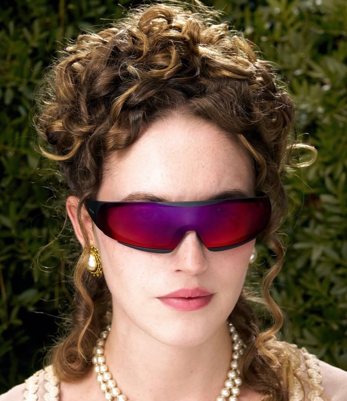 Every line, every reflection feels deliberate. The curvature of the lens echoes the smooth silhouette of a jet fuselage, while the fit remains tailored and minimal. It’s this dual identity—half heritage, half hyper-modern—that gives the collection its potency.
