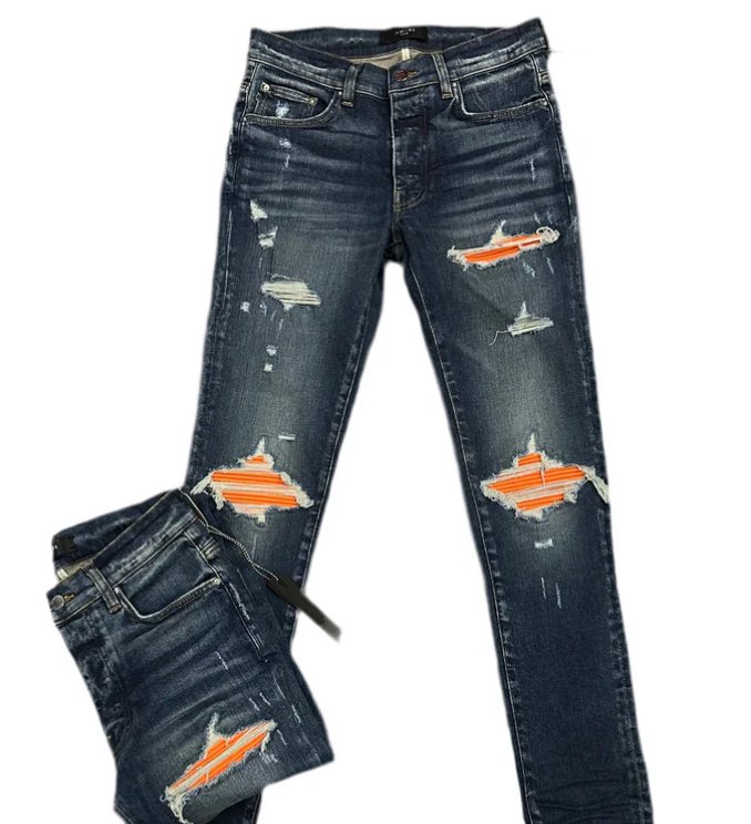 In a market saturated by digital drops and copycat silhouettes, these jeans maintain their distinction through texture, color, and fearless design. They do not chase trends—they are the event. And in every fray, every patch, every slash of orange, there lies a story waiting to be told.