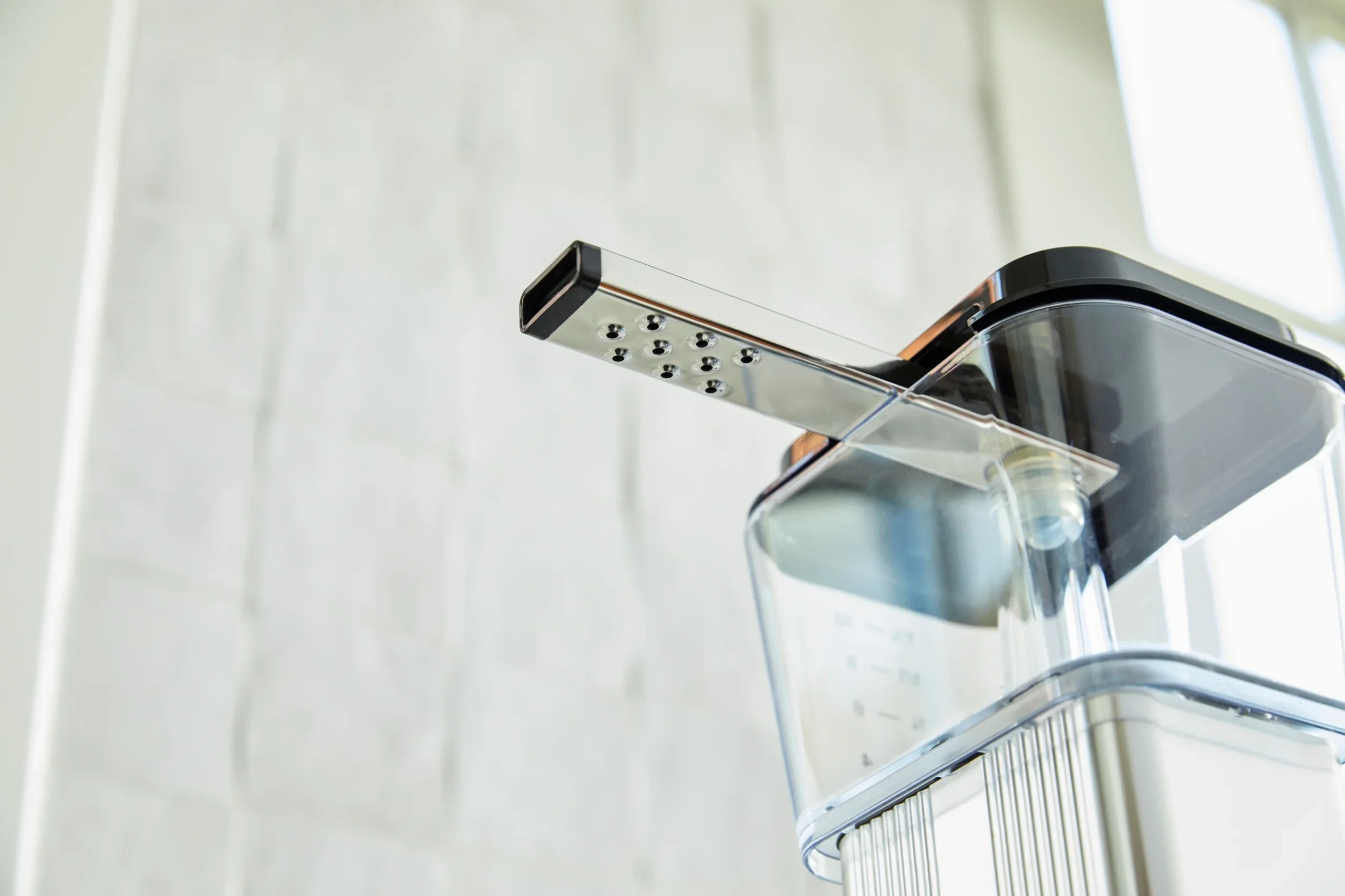 At first glance, the Off-White finish communicates a soft, architectural calm. It is not the sterile brightness of typical appliance white, nor is it overly stylized. Instead, it leans into a warm neutrality that blends seamlessly into contemporary interiors—particularly those influenced by Scandinavian minimalism. The silhouette is instantly recognizable: a vertical spine, a clean reservoir, and a glass carafe that foregrounds the act of brewing as something visual and deliberate. This is not a machine that hides the process. It invites you to watch it.