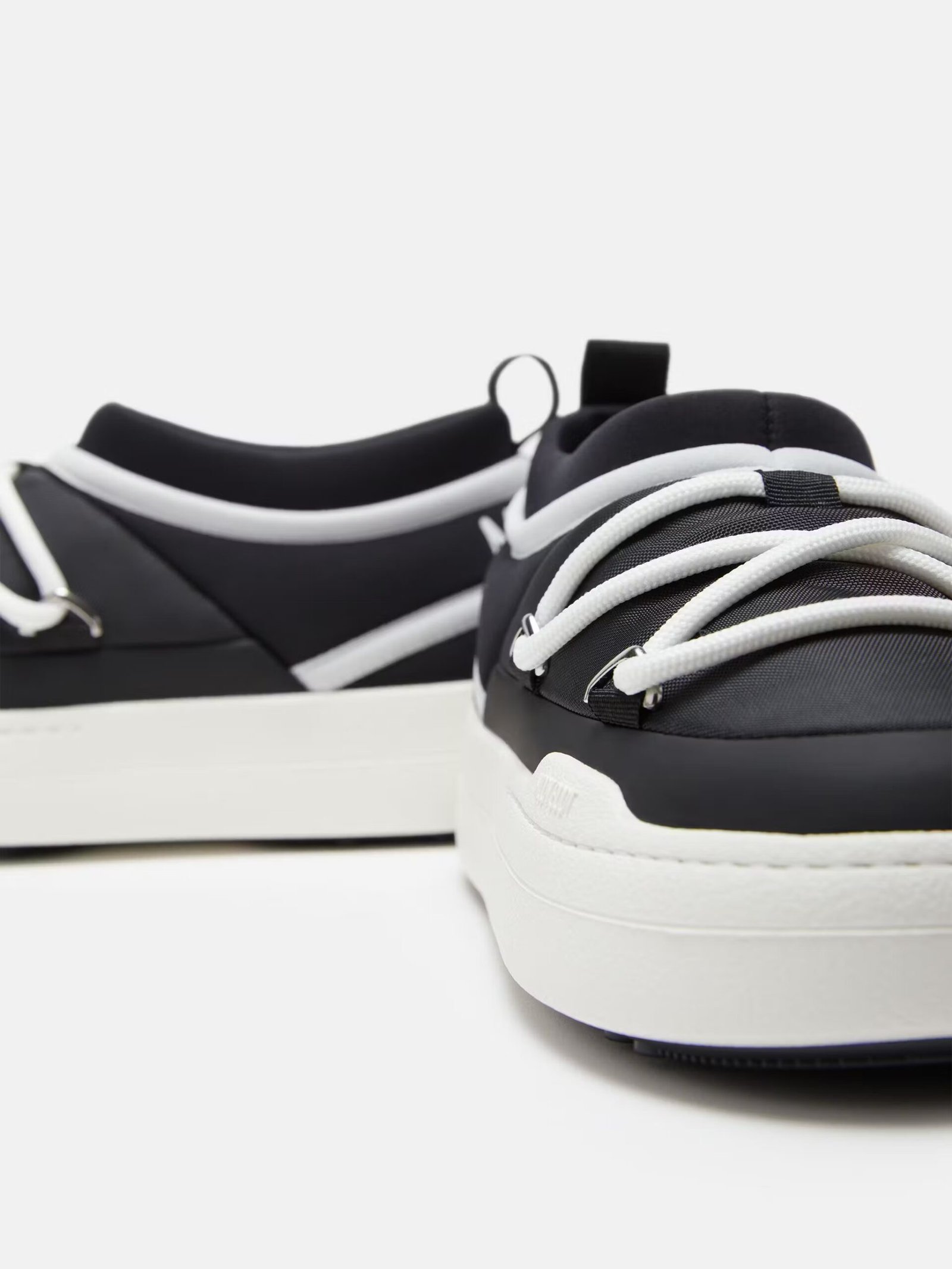 The Moon Boot Park Icon Black model is a stunning piece of footwear that exemplifies how form meets function. Its all-black design is sleek and minimalistic, offering a modern twist on the classic Moon Boot silhouette. The boot’s shape is unmistakable—bulky and oversized, yet with a streamlined quality that feels futuristic and avant-garde. The upper part of the boot is constructed with durable, waterproof materials that offer protection against the elements, while maintaining a fashionable aesthetic. Its high-shine finish makes it stand out, offering a glossy, polished look that appeals to trendsetters who favor both practicality and luxury in their footwear choices.