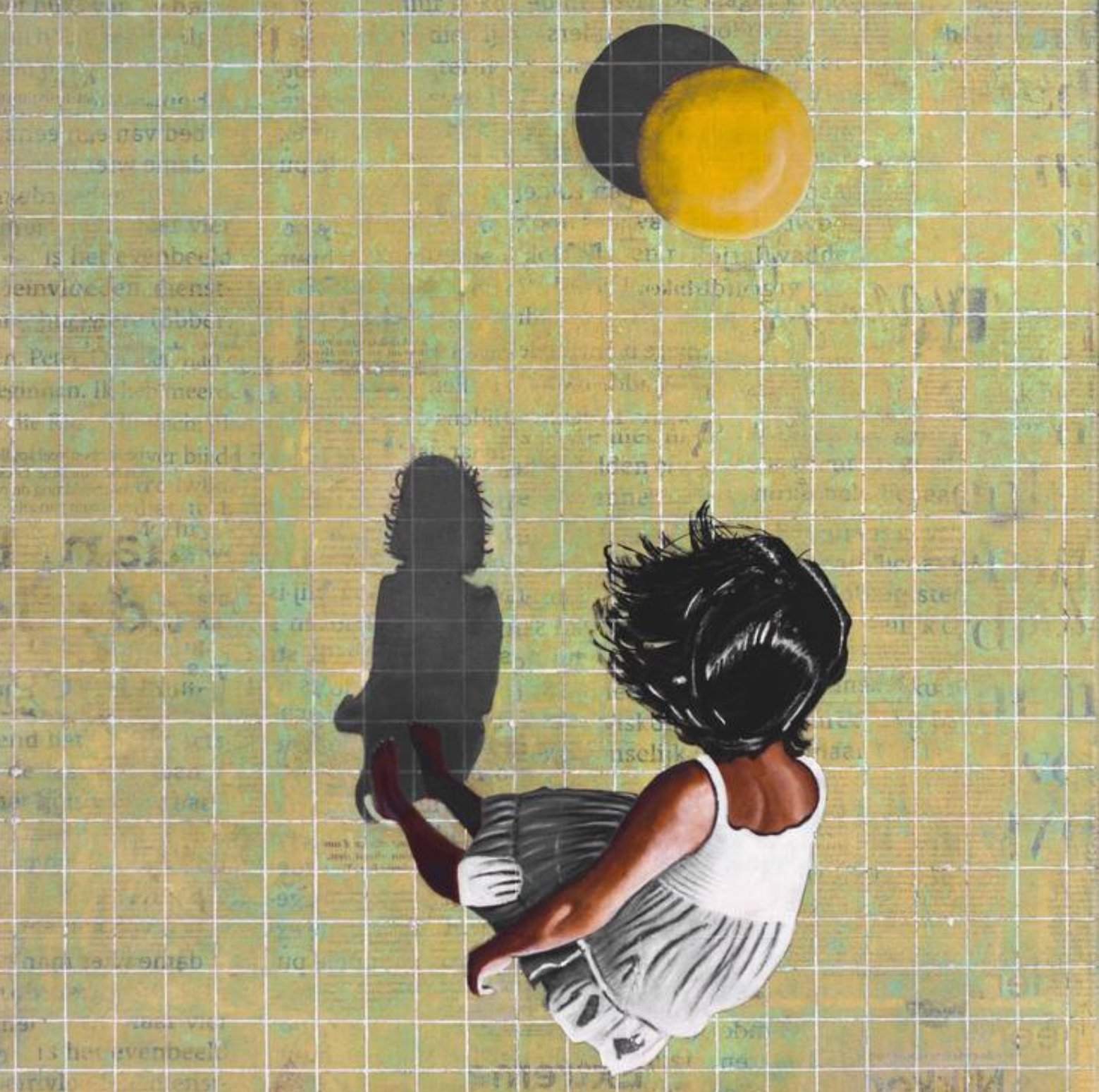 In My Summer Friend, Waterman’s trademark layering technique is on full display. The collage invites viewers to explore its intricacies, peeling back metaphorical and literal layers to uncover deeper meanings. The artwork feels simultaneously fragile and resilient, reflecting the nature of human relationships and the memories we hold dear.