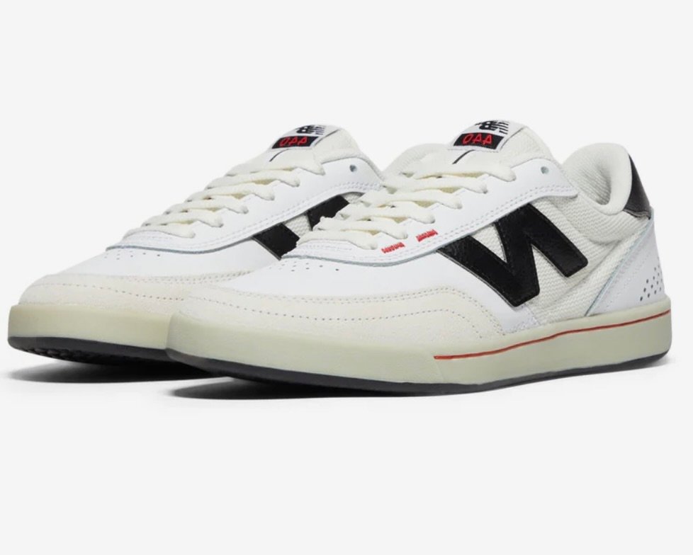 The NM440NO2 presents itself in crisp white leather and mesh, accented by bold black overlays and perforated details, but beneath its clean aesthetic lies a carefully constructed skate shoe engineered for resilience, grip, and comfort.