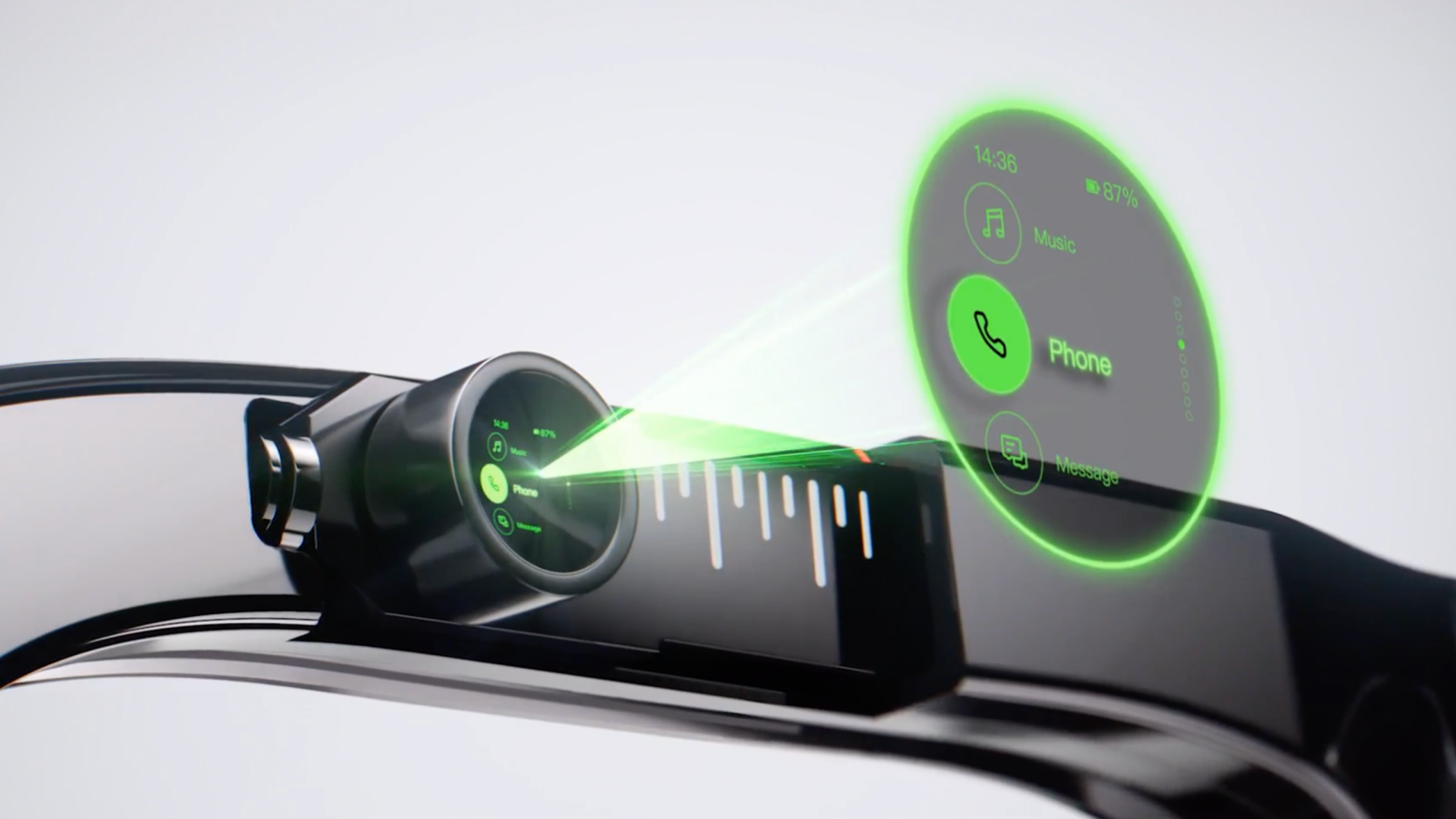 The device is operated via a trackpad ring worn on the finger. This intuitive control method allows users to scroll, select, and navigate the interface with simple gestures. The ring eliminates the need for voice commands or touchscreens, ensuring a discreet and efficient experience.