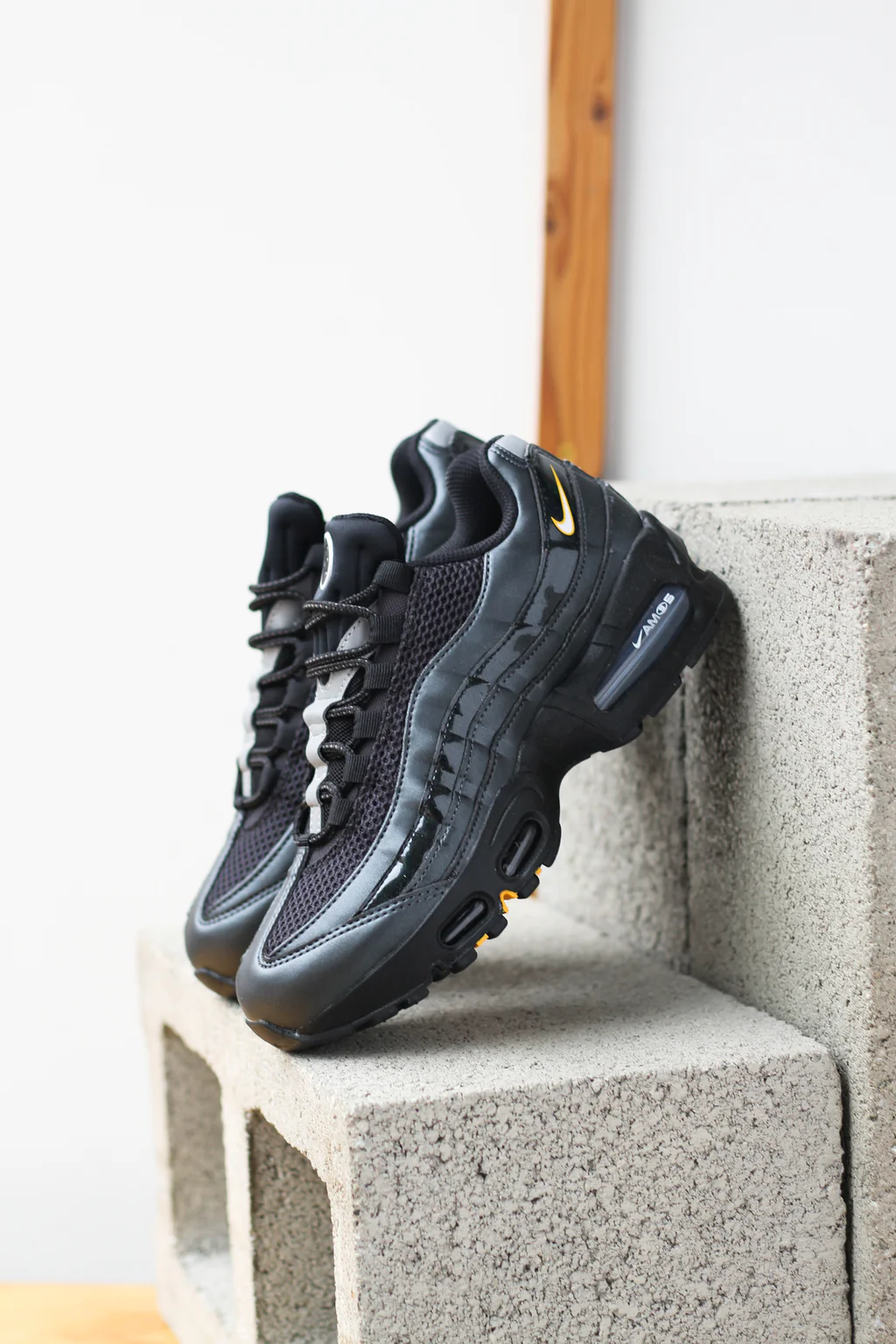 The Nike Air Max 95 remains one of the most recognizable shoes ever created, and the Black / White – University Gold edition reinforces why the silhouette continues to endure.